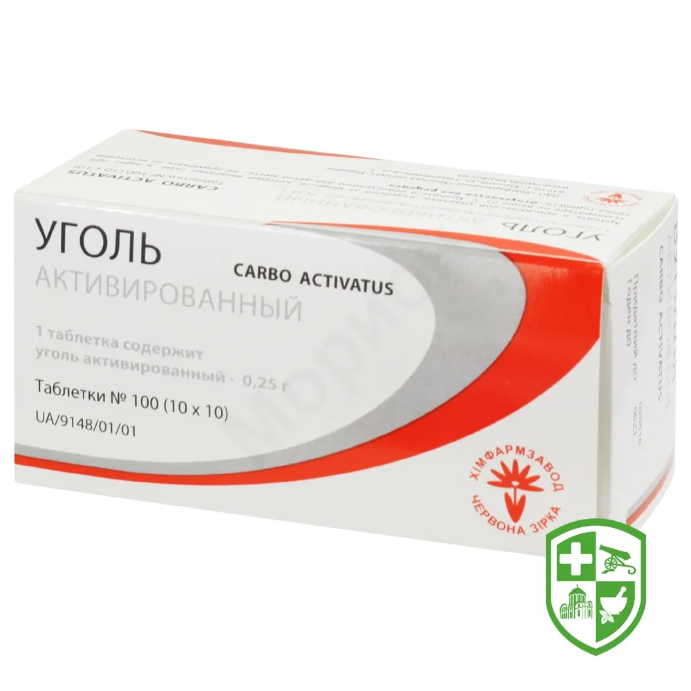 1 таблетка містить: вугілля активоване — 0,25 г;