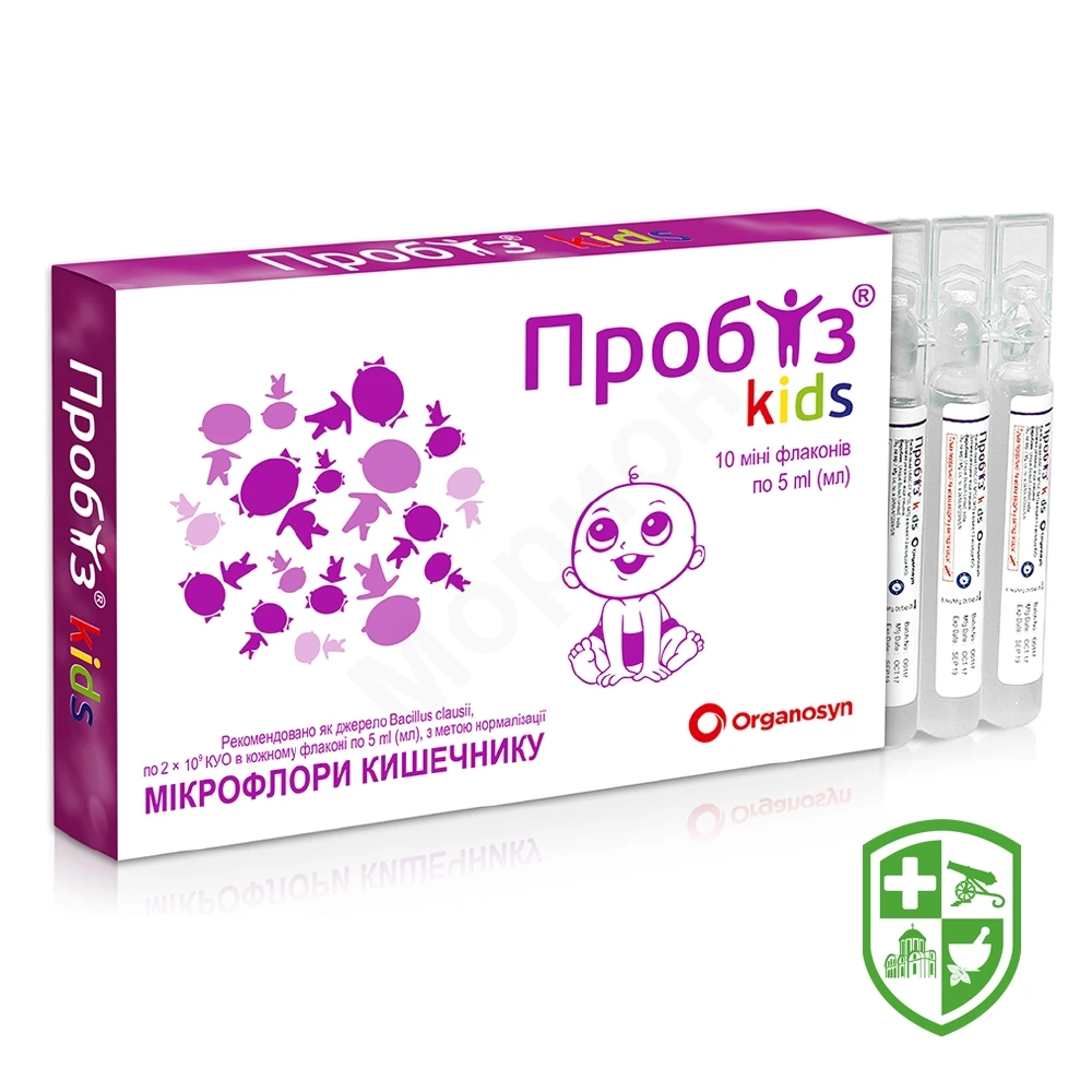 – у випадках порушення мікрофлори кишечнику внаслідок лікування антибіотиками або хіміотерапевтичними препаратами;– за необхідності поліпшення травлення;– у випадках діареї, закрепів, здуття живота та метеоризму;– за необхідності покращення синтезу та засвоєння вітамінів, особливо групи В;– за необхідності підвищення імунітету. Попередження. У флаконах можлива наявність видимих часточок, що утворюються внаслідок агрегації спор Bacillus clausii та, відповідно, не свідчать про те, що суспензія зазнала будь-яких змін.Суспензія Пробіз® kids призначена виключно для перорального використання. Не можна вводити у вигляді ін’єкцій або будь-яким іншим способом. Якщо Пробіз® kіds використовується одночасно з антибіотиками, його слід вживати між прийомами антибіотика. Не є лікарським засобом. Перед вживанням флакон слід струсити. Вживання лід час вагітності та лактації. Застережень щодо використання у період вагітності або годування грудьми немає. Спосіб вживання. Дітям віком від 28 днів до 18 років по 1 флакону 1–2 рази на добу. Дорослим по 1 флакону 2–З рази на добу.Для визначення тривалості використання Пробіз® kіds рекомендується консультація лікаря. Суспензію слід вживати через однакові проміжки часу, попередньо добре струсивши флакон, нерозведеною або розвести у воді чи іншій рідині (молоко, чай, сік). Застереження. Не перевищувати рекомендовану кількість (порцію). Не можна вживати при підвищеній чутливості до будь-якого з компонентів.