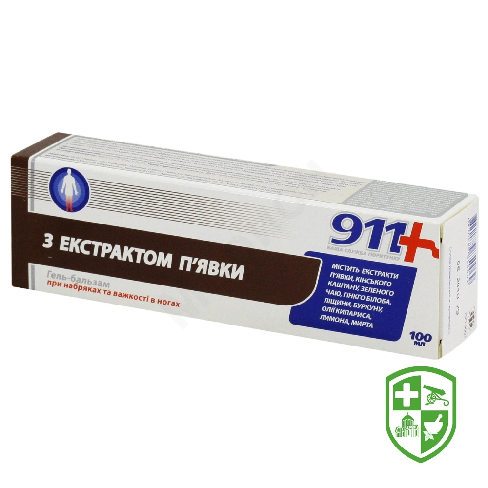 Гель-бальзам для ніг з екстрактом п'явки 911 Ваша служба порятунку 100 мл, туба, коробка