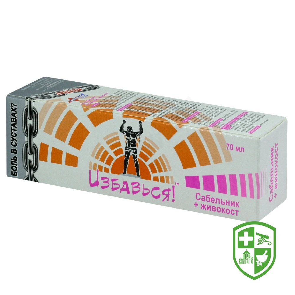 Гель-бальзам Сабельник — Живокіст: Рекомендований як допоміжний засіб при запальних і дегенеративно-дистрофічних захворюваннях опорно-рухового і нервово-м’язового апарату: артритах, артрозах, радикуліті, остеохондрозі, міозитах та ін .; травмах (ударах, розтягненнях зв’язок, закритих переломах кісток). Активні компоненти гелю-бальзаму мають виражену протизапальну дію, допомагають зняттю больового синдрому, м’язової напруги і набряклості в зоні запаленого суглоба, сприяють регенерації кісткової і хрящової тканин при захворюваннях суглобів, прискорюють процес зрощення кісток при переломах.