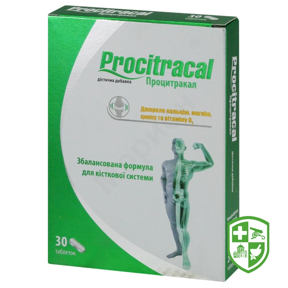 Склад дієтичної добавки ПРОЦИТРАКАЛ забезпечує спільну збалансовану дію всіх компонентів, поповнює нестачу незамінних поживних речовин — кальцію, магнію, цинку, вітаміну D3, яких не вистачає в раціоні сучасної людини. Забезпечує нормальне функціонування всіх органів і систем, зміцнює кістки скелета, а також уповільнює розвиток вікових змін в організмі.