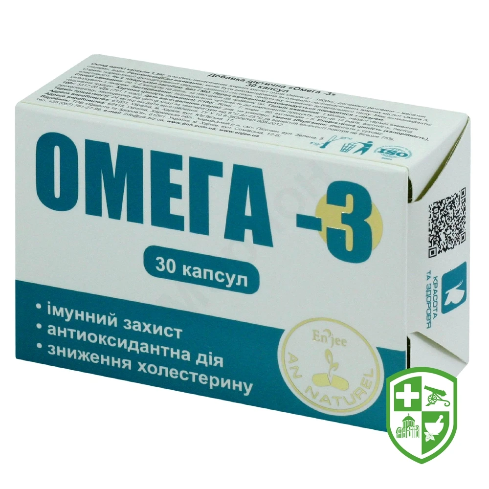 Омега-3 жирні кислоти — комплекс поживних речовин, який включає ейкозапентаєнову (ЕПК) і докозагексаєнову (ДГК) кислоти. Омега-3 підтримує правильне функціонування внутрішніх органів, покращує розумові процеси, виводить з організму токсини, шлаки і канцерогенні речовини. Запобігає атеросклерозу та іншим захворюванням серцево-судинної системи (виводить надлишковий холестерин і руйнує холестеринові бляшки, що звужують просвіт судин), знижує проникність стінок кровоносних судин і надає їм еластичність, нормалізує кров’яний тиск, розріджує кров, перешкоджаючи утворенню тромбів.