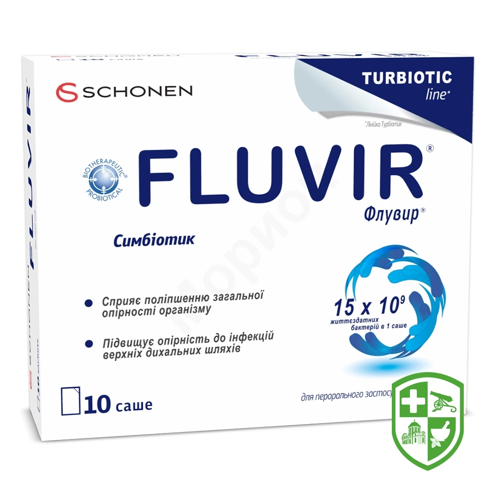 1 саше містить 2,5 х 109 КУО Lactobacillus plantarum LP01; 2,5 х 109 КУО Lactobacillus plantarum LP02; 2,5 х 109 КУО Lactobacillus rhamnosus LR04; Lactobacillus rhamnosus LR05; 5 x 109 КУО Bifidobacterium lactis BS01 (всього 15 х 109 КУО життєздатних бактерій). допоміжні речовини: фруктоолігосахариди — 3000 мг, нерозчинна клітковина — 225,9 мг, картопляний мальтодекстрин (загусник) — 322 мг, кремні діоксид (емульгатор) — 7,1 мг. Пробіотичні бактерії, що входять до складу Флувір, сприяють підвищенню загальної опірності організму до найбільш поширених у зимовий період вірусних і бактеріальних інфекцій верхніх шляхів, попереджають дисбіоз і антибіотик-асоційовану діарею під час і після прийому антибіотиків, розвиток харчової алергії. Lactobacillus plantarum LP01 та LP02, Lactobacillus rhamnosus LR04 та LR05, Bifidobacterium lactis BS01