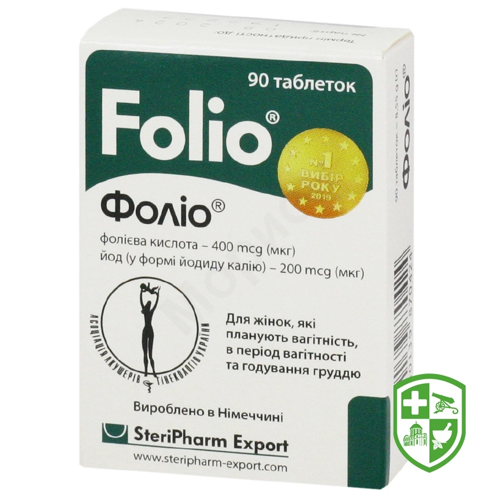 Фоліо — дієтична добавка, створена за технологією німецької фірми «Стеріфарм» спеціально для жінок, матерів, що годують і які планують вагітність. Для нормального розвитку дитини та мами дуже важливо достатнє надходження в організм йоду і фолієвої кислоти.