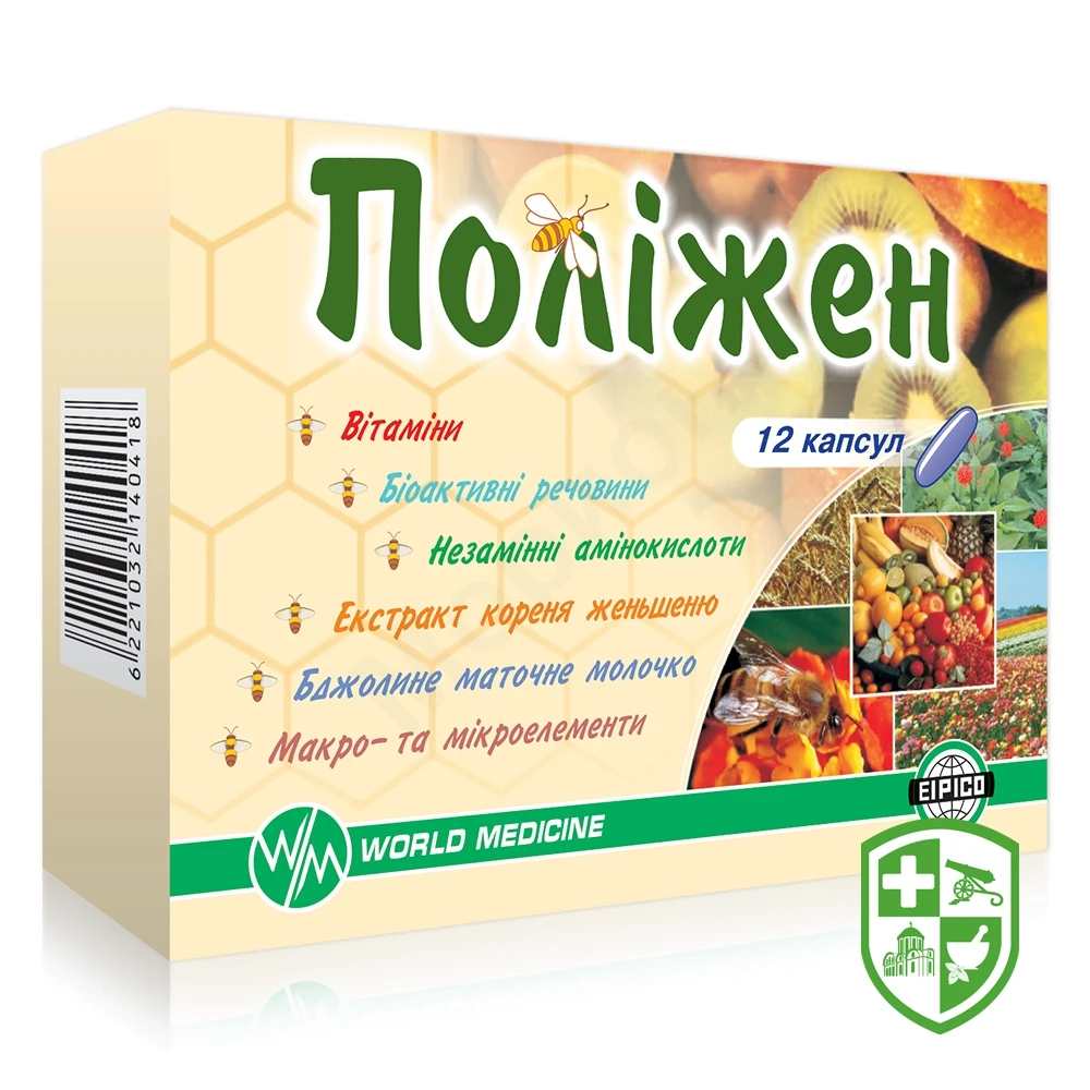 основні речовини: вітамін С (кислота аскорбінова) − 150,0 мг, лецитин соєвий − 90,0 мг, кальцій (у формі кальцію гідрофосфату безводного) − 50,0 мг, олія паростків пшениці − 50,0 мг, вітамін Е (α-токоферолу ацетат) − 42,75 мг, екстракт кореню женьшеню (Panax ginseng) − 40,0 мг, фосфор (у формі кальцію гідрофосфату безводного) − 38,71 мг, олія сафлорова − 30,0 мг, пилок бджолиний − 25,0 мг, дианолу бітартрат − 25,0 мг, L-лізин (у формі L-лізину гідрохлориду) − 20,0 мг, L-аргінін (у формі L-аргініну гідрохлориду) − 20,0 мг, бджолине маточне молочко ліофілізоване − 20,0 мг, вітамін РР (нікотинамід) − 20,0 мг, цинк (у формі цинку оксиду) − 15,0 мг, залізо (II) (у формі заліза фумарату) − 14,0 мг, вітамін В5 (кальцію пантотенат) − 10,0 мг, вітамін В13 (кислота оротова) − 10,0 мг, калій (у формі калію сульфату) − 8,0 мг, вітамін А (ретинолу пальмітат) − 5000 МО, вітамін В2 (рибофлавін) − 5,0 мг, вітамін В6 (у формі піридоксину гідрохлориду) − 4,0 мг, вітамін В1 (у формі тіаміну гідрохлориду) − 3,315 мг, марганець (у формі марганцю сульфату моногідрату) − 2,5 мг, мідь (у формі міді сульфату моногідрату) − 2,0 мг, аскорбат кальцію − 1,0 мг, магній (у формі магнію сульфату гептагідрату) − 1,0 мг, вітамін В9 (кислота фолієва) − 0,5 мг, фтор (у формі кальцію фториду) − 0,2 мг, вітамін Н (біотин) − 0,2 мг, молібден (у формі натрію молібдату дигідрату) − 186,0 мкг, бор (у формі натрію тетраборату декагідрату) − 130,0 мкг, хром (у формі хрому піколінату) − 100,0 мкг, йод (у формі калію йодиду) − 150,0 мкг, метіонін (у формі L-селенметіоніну) − 74,0 мкг, селен (у формі L-селенметіоніну) − 50,0 мкг, вітамін В12 (ціанокобаламін) − 7,65 мкг, вітамін D3 (холекальциферол) − 270 МО, нікель (у формі нікелю сульфату гексагідрату) − 4,0 мкг;