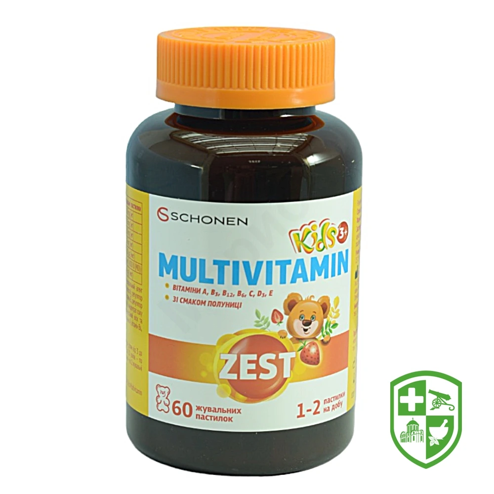 3 шари таблетки — роздільне вивільнення — краще засвоєння.Тришарова технологія Зест Мультивітамін забезпечує диференційоване вивільнення вітамінів та мінералів у три фази: – перша — швидке вивільнення, впродовж 5 хв — для водорозчинних вітамінів групи В та магнію;– друга — впродовж 45 хв — для мінералів;– третя — повільне вивільнення через 8 год — для водорозчинних вітамінів С, Н та жиророзчинних вітамінів.Запатентована технологія MULTI-LAYER компанії S.I.I.T S.r.l., що використовується у виробництві тришарових таблеток Зест Мультивітамін, розроблена спеціально, щоб забезпечити максимальну біодоступність та покращену засвоюваність компонентів завдяки дії впродовж цілого дня.Завдяки цій технології оптимізована взаємодія між вітамінами та мінералами для полегшення засвоєння. Це забезпечує максимальну біодоступність кожної складової.Зест Мультивітамін — це базовий вітамінно-мінеральний комплекс, який завдяки збалансованій формулі гарантує щоденне надходження вітамінів, мінералів та антиоксидантів з метою підтримки загального стану здоров’я організму впродовж доби. Особливості компонентів, що входять до складу Зест Мультивітамін Вітамін В5 (кислота пантотенова) сприяє фізіологічному енергетичному метаболізму, синтезу та метаболізму стероїдних гормонів, вітаміну D та деяких нейромедіаторів, зменшенню втомлюваності, бере участь у забезпеченні розумової діяльності. Вітамін РР (вітамін В3) сприяє підтримці природного енергетичного метаболізму, функціонуванню нервової системи, зменшенню втомлюваності, бере участь у підтримці нормального стану слизових оболонок та шкіри. Вітамін В1 сприяє фізіологічному перебігу енергетичного метаболізму, функціонуванню нервової системи, функції серця. Вітамін В2 сприяє нормальному перебігу енергетичного метаболізму, обміну заліза, захисту клітин від оксидативного стресу, підтримці фізіологічного стану слизових оболонок, еритроцитів, шкіри, зору, належному функціонуванню нервової системи, зменшенню втомлюваності. Вітамін В6 сприяє синтезу цистеїну, обміну гомоцистеїну, білка та глікогену; енергетичному метаболізму, зменшенню втомлюваності, утворенню червоних кров’яних тілець, фізіологічному функціонуванню нервової та імунної систем, бере участь у регуляції гормональної активності. Вітамін В9 (кислота фолієва) сприяє синтезу амінокислот, формуванню крові, обміну гомоцистеїну, відіграє роль у процесі поділу клітин, сприяє правильному функціонуванню нервової та імунної систем, зменшенню втомлюваності. Вітамін В12 сприяє фізіологічному енергетичному метаболізму, обміну гомоцистеїну, функціонуванню нервової та імунної систем, нормальному утворенню червоних кров’яних тілець, відіграє роль у процесі поділу клітин, сприяє зменшенню втомлюваності. Магній сприяє зменшенню втомлюваності, бере участь у підтримці електролітного балансу, енергетичного метаболізму, синтезі білка, відіграє роль у процесі поділу клітин, сприяє функціонуванню нервової системи, функції м’язів, підтриманню нормального стану кісток і зубів. Цинк сприяє підтримці нормального обміну речовин, синтезу ДНК та білка, відіграє роль у процесі поділу клітин, покращує засвоєння та бере участь у метаболізмі вітаміну А, сприяє підтримці нормального стану кісток, волосся, нігтів, шкіри, бере участь у підтримці