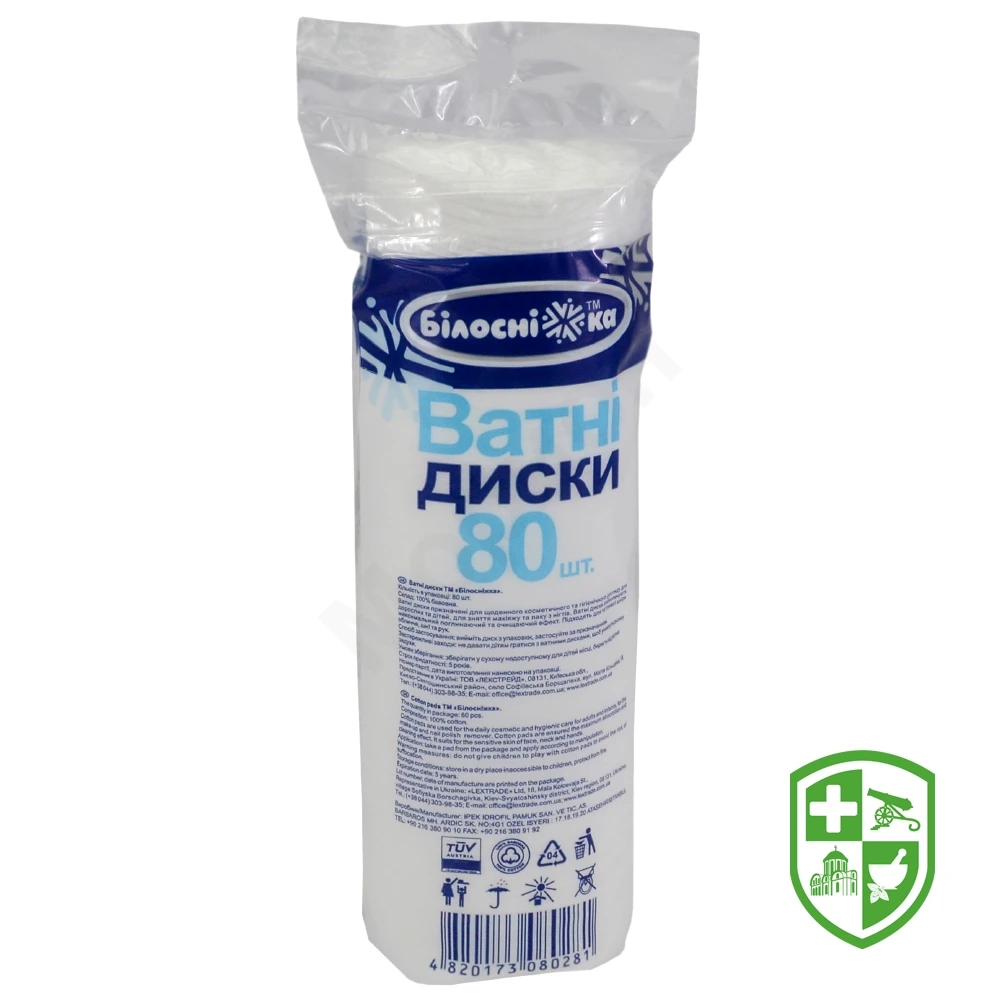 Диски ватні Білосніжка зі стовідсоткової вибіленої бавовни, призначені для корекції макіяжу, а також видалення косметики.
