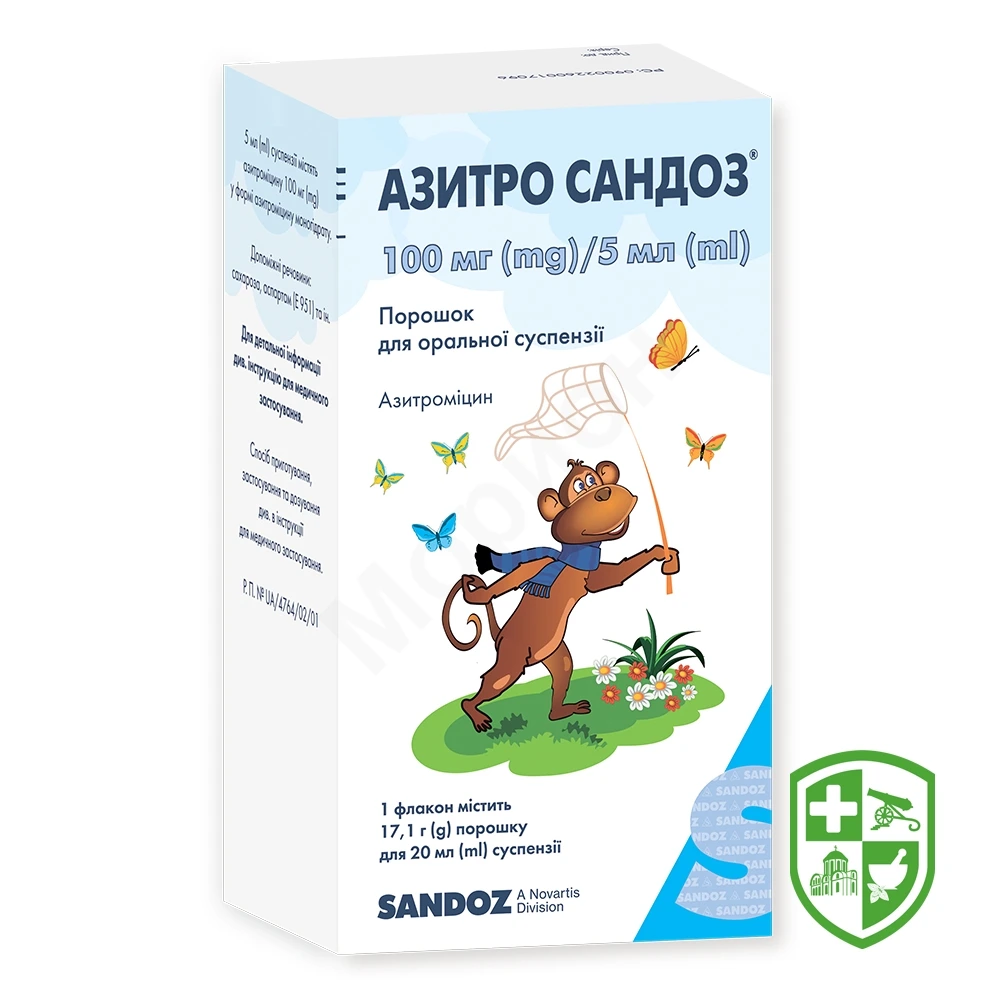 5 мл суспензії містять азитроміцину 100 мг або 200 мг у формі азитроміцину дигідрату;