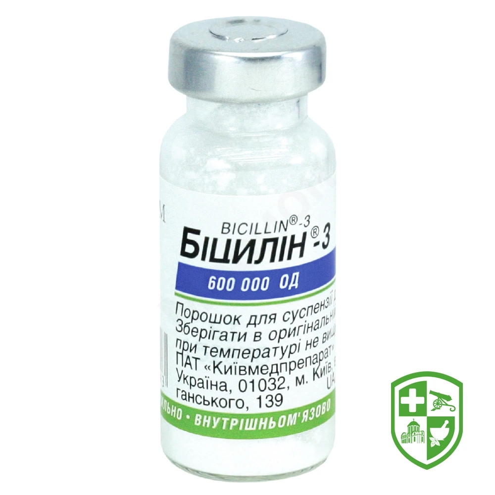 1 флакон містить: біцилін-3, порошок 600000 ОД (суміш бензатину бензилпеніциліну стерильного (біциліну-1) 200000 ОД, бензилпеніциліну натрієвої солі стерильної 200000 ОД, бензилпеніциліну новокаїнової солі стерильної 200000 ОД).