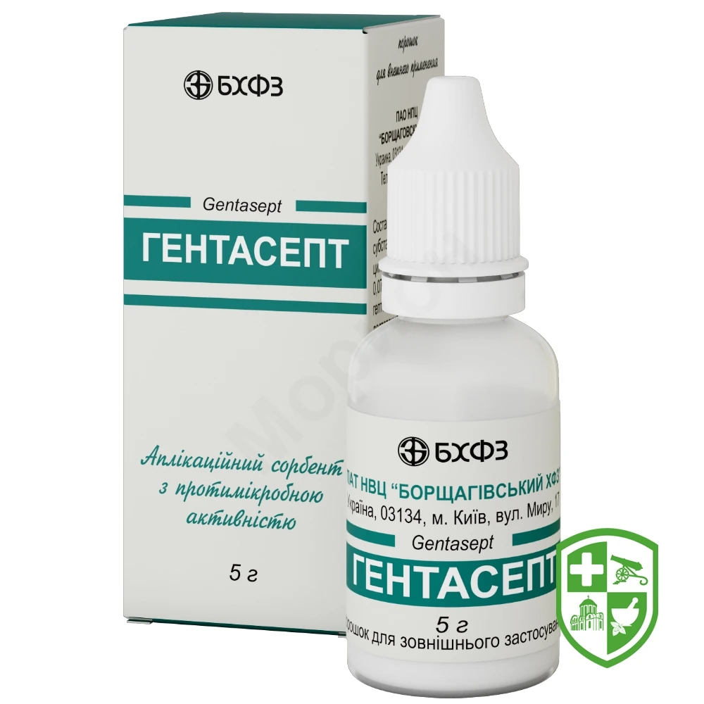 Гентасепт — комбінований антимікробний препарат пролонгованої дії для місцевого застосування, що містить аміноглікозид гентаміцину сульфат, кремнійорганічний сорбент — поліметилсилоксан (метоксан) і сполуку цинку з триптофаном. Гентаміцину сульфат — антибіотик широкого спектра дії з бактерицидним ефектом, активний відносно патогенних грампозитивних мікроорганізмів: Staphylococcus aureus, streptococcus, Mycobacterium spp. — і грамнегативних мікроорганізмів: Pseudomonas aeruginosa, Aerobacter aeruginosa, Escherichia coli, Proteus spp., Klebsiella spp., Serratia spp., Shigella spp., Salmonella spp., Citrobacter spp., Providenta spp., Yersinia spp. Поліметилсилоксан забезпечує сорбційно-дезінтоксикаційні властивості та разом з цинктриптофаном потенціює антибактеріальні ефекти антибіотика та підтримує протимікробну концентрацію антибіотика в рані на терапевтичному рівні протягом 8 діб. Аплікаційна терапія препаратом Гентаcепт знижує на 2–3-тю добу кількість мікроорганізмів у рані до мінімального рівня (102-103 в 1 г), прискорює перехід фази гідратації у фазу дегідратації, попереджає розвиток можливих гнійно-септичних ускладнень. Завдяки сорбційним властивостям препарат поглинає токсичні продукти життєдіяльності мікроорганізмів, низькомолекулярних токсичних метаболітів тканин (піровиноградна та молочна кислоти, перекисні сполуки, продукти окиснення амінокислот, поліпептиди, ліпіди та ін.), продукти дегідратації фібрину. Механізм дії препарату Гентаcепт пов'язаний не тільки з пригніченням синтезу білка мікроорганізмів, але також із порушенням ліпідного шару клітинної стінки внаслідок утворення комплексів. Гентаcепт зменшує прояви місцевої та загальної інтоксикації, маючи антибактеріальні властивості та чинить дренажну і протинабрякову дії, нормалізує мікроциркуляцію, газообмін, рН середовища в рані. Це сприяє очищенню ран від продуктів ексудації та розпаду тканин, зникненню місцевих запальних реакцій, стимуляції росту грануляційної тканини, покращенню процесу загоєння, запобігає утворенню келоїдних рубців. Гентаcепт також очищає рани при опіках, зменшує запальні реакції при їхньому лікуванні, скорочує площу глибоких опіків, запобігаючи руйнуванню тканин, прискорює формування грануляційного покриву при глибоких опіках та епітелізацію при поверхневих опіках, сприяє якісній підготовці ран до аутодермопластики.