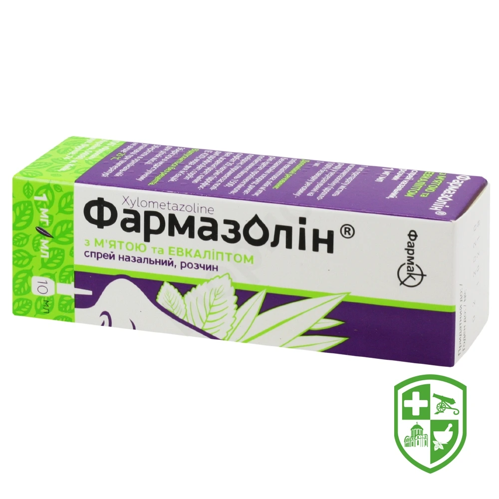 Завдяки зволожувальним компонентам (сорбітол, гіпромелоза) препарат Фармазолін® з м’ятою та евкаліптом, спрей назальний, допомагає при сухості та подразненні слизової оболонки назальних ходів. Препарат має збалансоване значення рН у межах, властивих носовій порожнині.