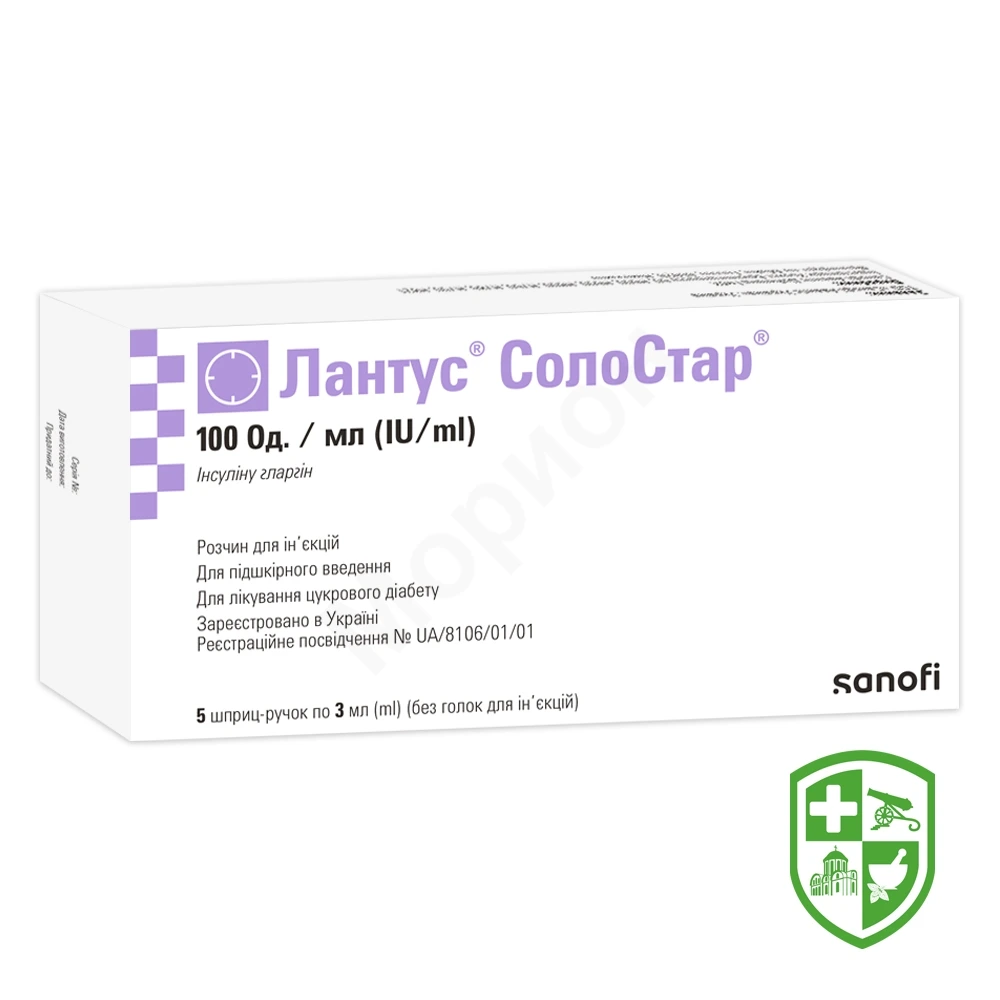 Інсулін гларгін розроблений як аналог інсуліну людини, який має низьку розчинність у нейтральному середовищі. У препараті Лантус® СолоСтар® він є повністю розчинним завдяки кислому середовищу розчину для ін’єкцій (рН 4). Після введення у підшкірні тканини кислий розчин нейтралізується, що призводить до виникнення мікропреципітатів, з яких постійно вивільняється невелика кількість інсуліну гларгіну, що забезпечує плавний (без піків) та передбачуваний профіль кривої залежності «концентрація–час», а також більш тривалу дію препарату.