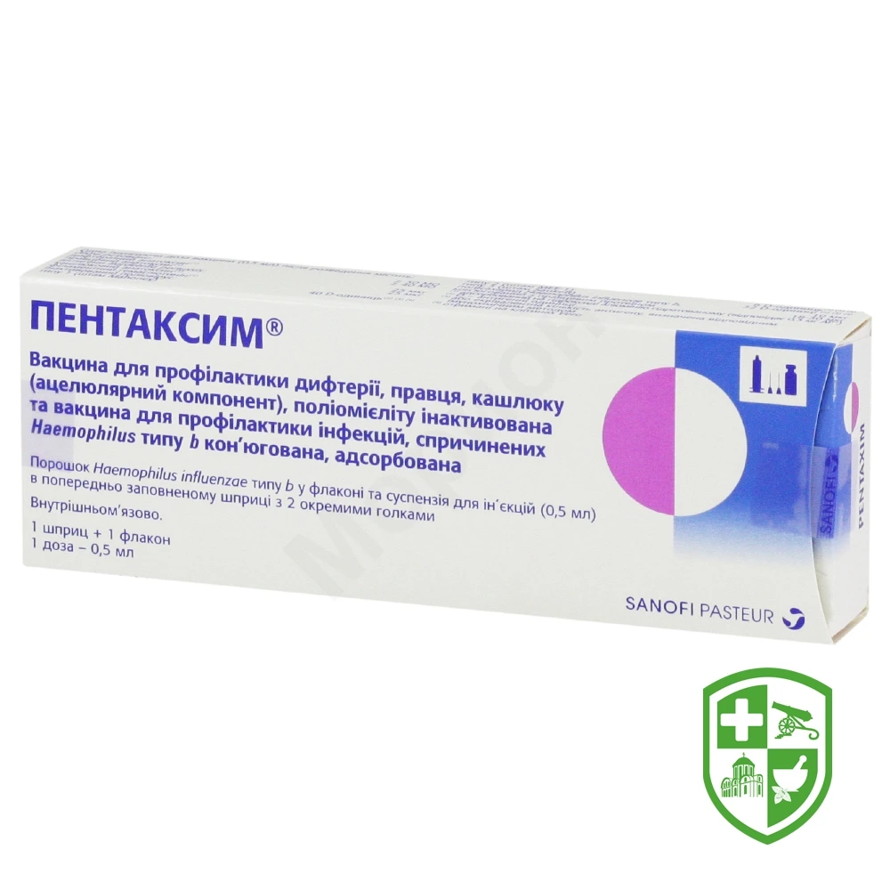 для курсу первинної імунізації немовлят віком від 2 місяців; для бустерної вакцинації через один рік після курсу первинної вакцинації протягом другого року життя.Вакцина Пентаксим® не забезпечує захисту від інфекцій, збудниками яких є інші типи Haemophilus influenzae, а також від менінгіту, викликаного іншими мікроорганізмами.
