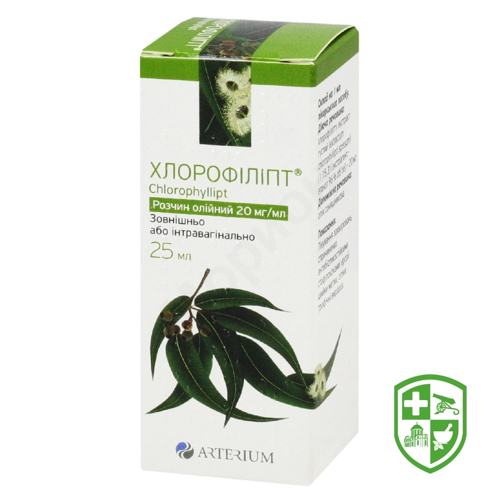діюча речовина: 1 мл лікарського засобу містить хлорофіліпту екстракт густий (extractum chlorophyllipti spissum) (1:15,3) (екстрагент-етанол 96% об/об) — 20 мг;