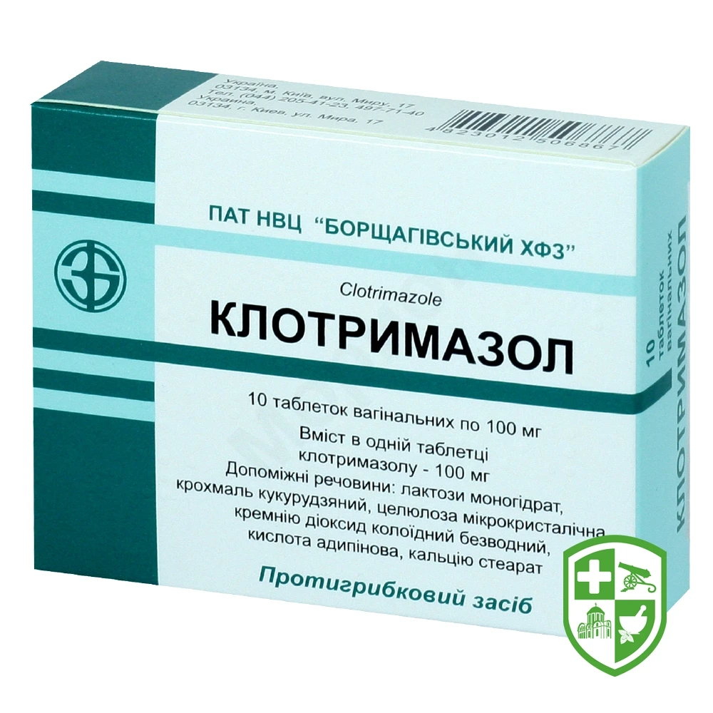 1 таблетка містить клотримазолу (у перерахуванні на 100% суху речовину) — 100 мг;