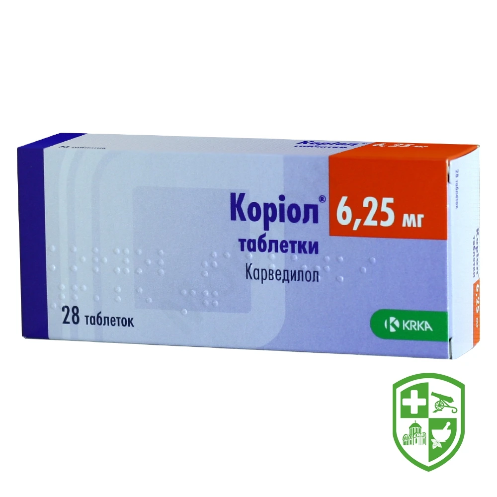 1 таблетка містить 3,125 мг або 6,25 мг карведилолу;