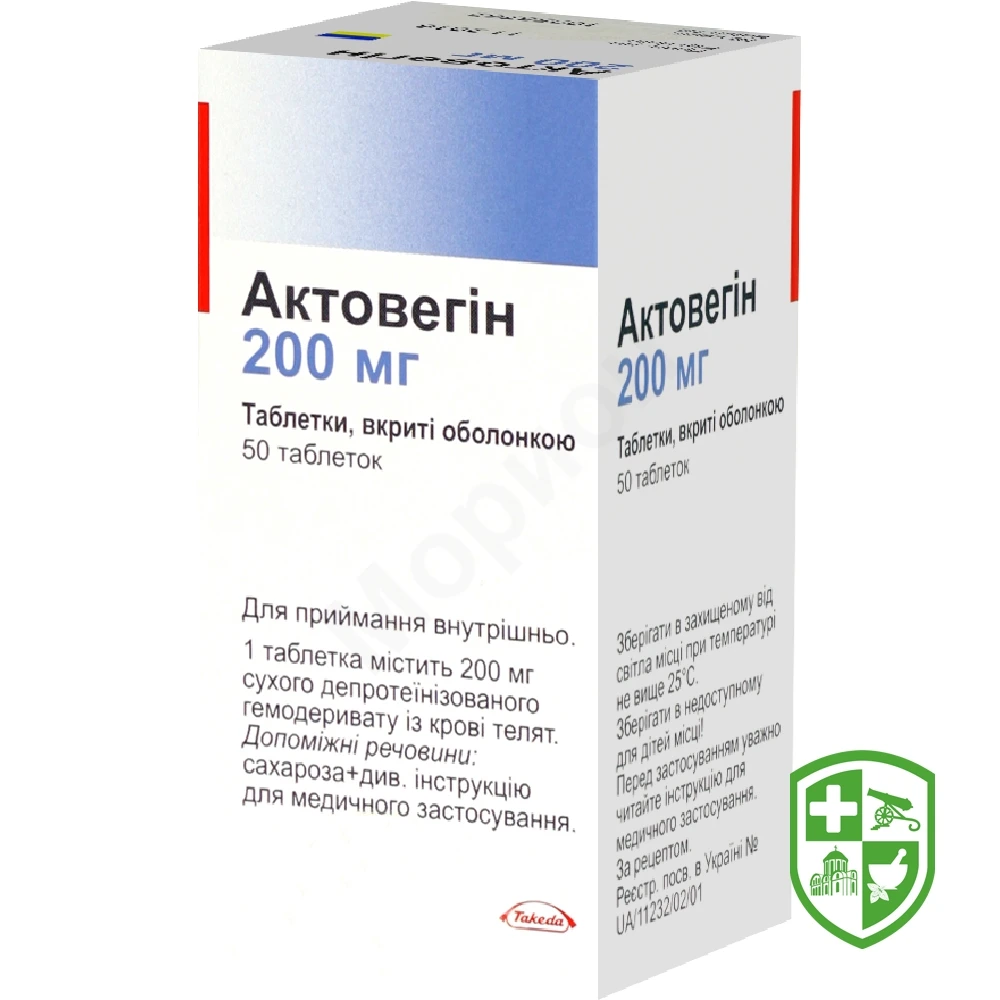 діюча речовина: 1 таблетка містить: депротеїнізованого гемодеривату із крові телят у вигляді Актовегіну концентрату, 200 мг сухої маси;