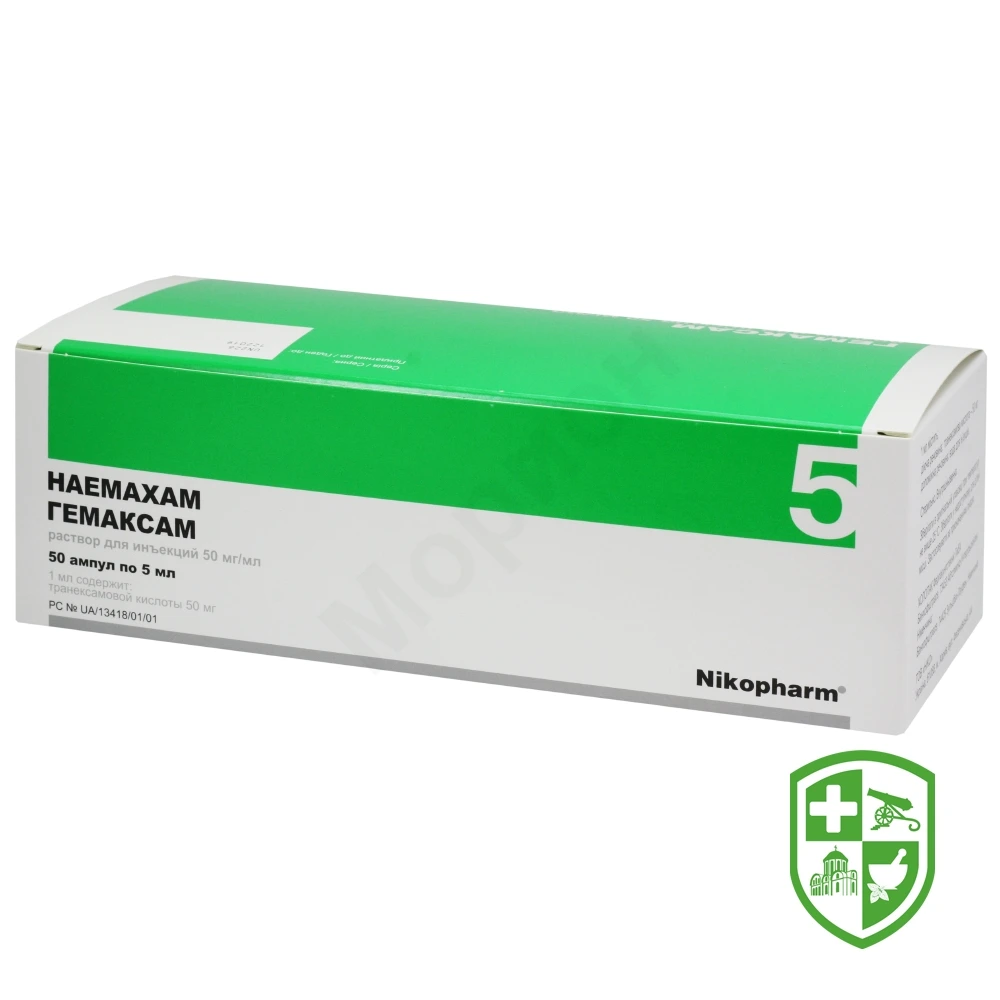Гемаксам не сумісний з препаратами крові, розчинами, що містять пеніцилін, гіпертензивні засоби (норепінефрин, дезоксіепінефрину гідрохлорид), тетрациклінами, дипіридамолом, діазепамом.