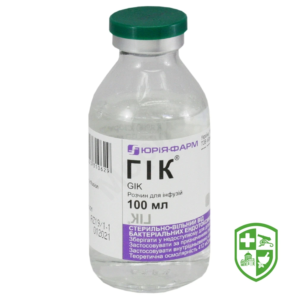 Щоб запобігти виникненню гіпоосмолярності плазми, розчин ГІК® можна комбінувати із введенням ізотонічного розчину натрію хлориду.