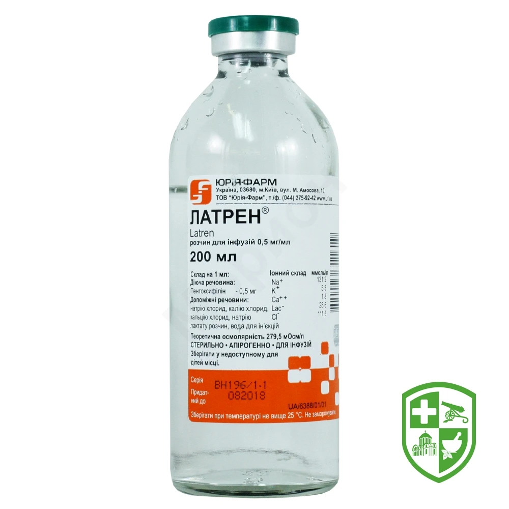 пацієнтам із підвищеною чутливістю до пентоксифілліну, до інших метилксантинів або до будь-якої з допоміжних речовин препарату Латрен®; пацієнтам із масивною кровотечею (ризик посилення кровотечі); пацієнтам з обширним крововиливом у сітківку ока, при крововиливах у мозок (ризик посилення кровотечі). Якщо під час лікування пентоксифіліном відбувається крововилив у сітківку ока, застосування лікарського засобу слід одразу припинити; пацієнтам у гострий період інфаркту міокарда; пацієнтам із виразкою шлунка та/або кишковими виразками; пацієнтам із геморагічним діатезом.Взаємодія з іншими лікарськими засобами та інші види взаємодій