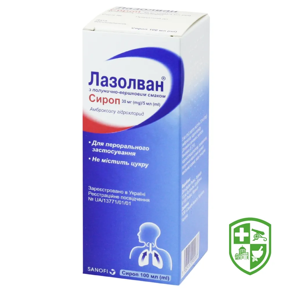 Лазолван з полунично-вершковим смаком сироп 30 мг/5 мл 100.мл №1