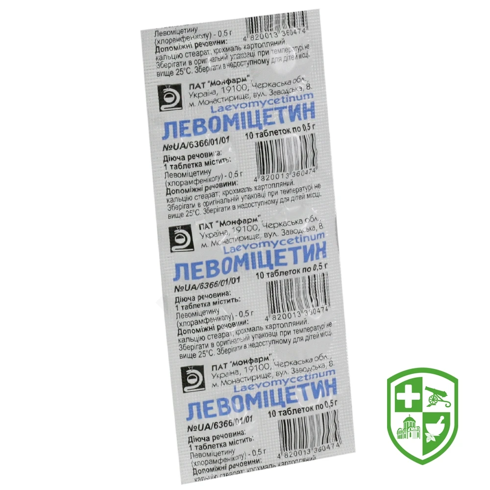 1 таблетка містить левоміцетину (хлорамфеніколу) 500 мг (0,5 г);