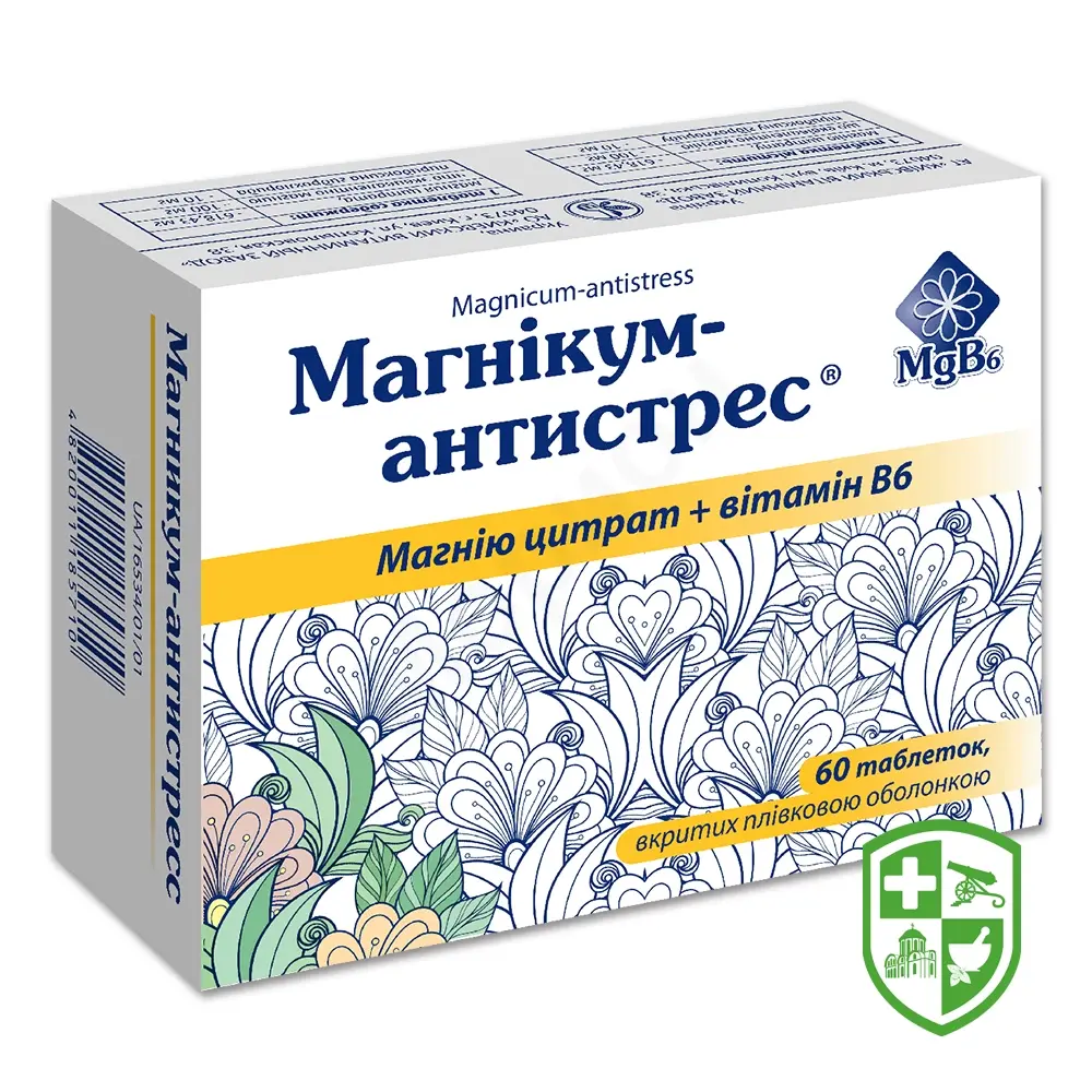 1 таблетка містить магнію цитрату 618,43 мг, що еквівалентно магнію 100 мг, і піридоксину гідрохлориду 10 мг;