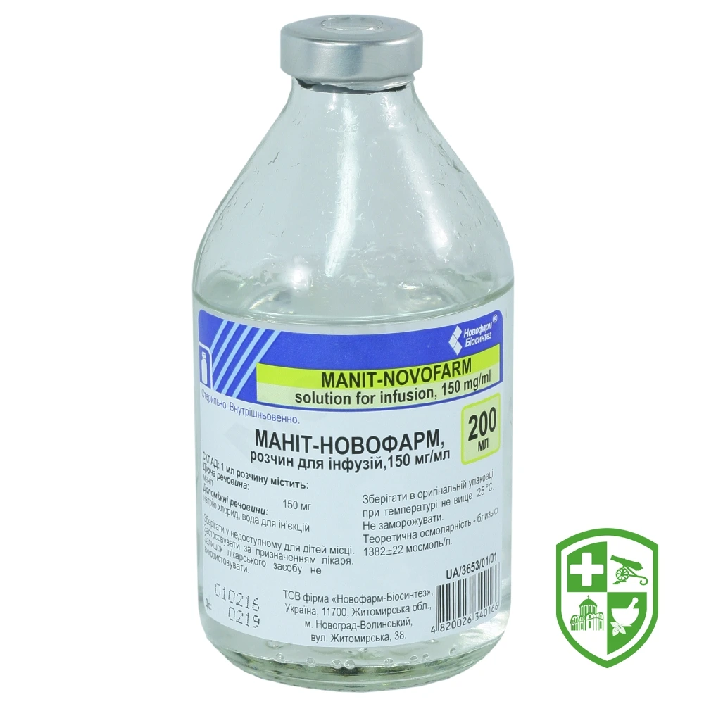 Фільтрується нирками без наступної канальцевої реабсорбції. Період напіввиведення — приблизно 100 хв (при гострій нирковій недостатності може зрости до 36 годин). Діуретичний ефект проявляється через 1–3 години після введення, зниження тиску спинномозкової рідини і внутрішньоочного тиску — протягом 15 хв після початку інфузії. Максимальне зниження внутрішньоочного тиску відзначається через 30–60 хв після початку введення. Зниження тиску спинномозкової рідини зберігається протягом 3–8 годин, зниження внутрішньоочного тиску — протягом 4–8 годин після закінчення інфузії. Маніт незначною мірою метаболізується у печінці з утворенням глікогену.