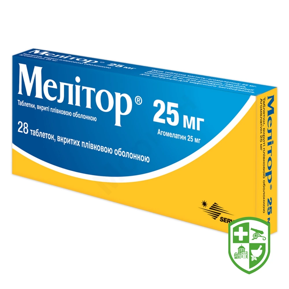 Флувоксамін, сильнодіючий інгібітор CYP1A2 та помірний інгібітор CYP2C9, значно інгібує метаболізм агомелатину, що призводить до 60-кратного (у діапазоні 12–412) збільшення концентрації агомелатину. Таким чином, одночасне застосування Мелітору® із сильнодіючими інгібіторами CYP1A2 (флувоксамін, ципрофлоксацин) протипоказане.
