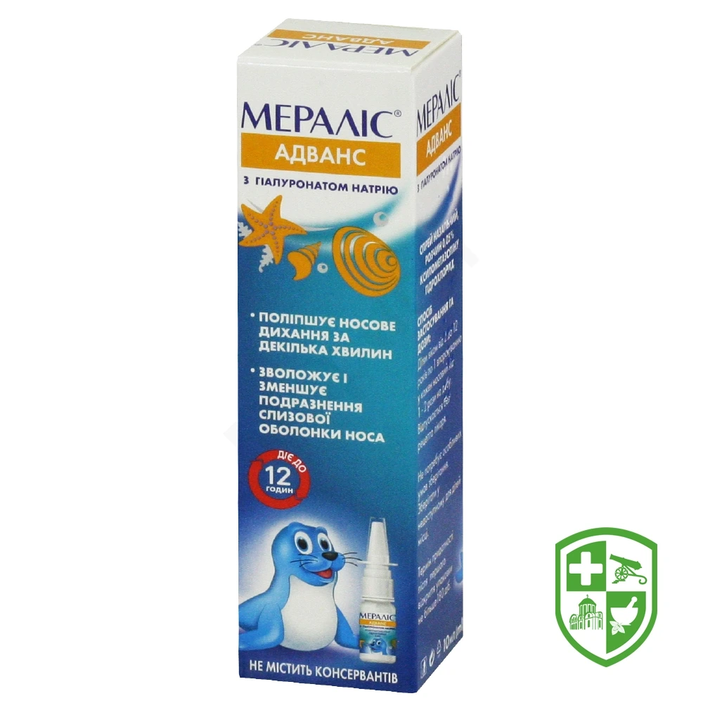 Препарат не знижує мукоциліарну функцію. Мераліс® Адванс має збалансоване значення рН у межах, властивих для носової порожнини. Гіалуронова кислота насичує слизову оболонку вологою і, таким чином, підтримує її в оптимальних умовах для процесу загоєння, якщо це потрібно.