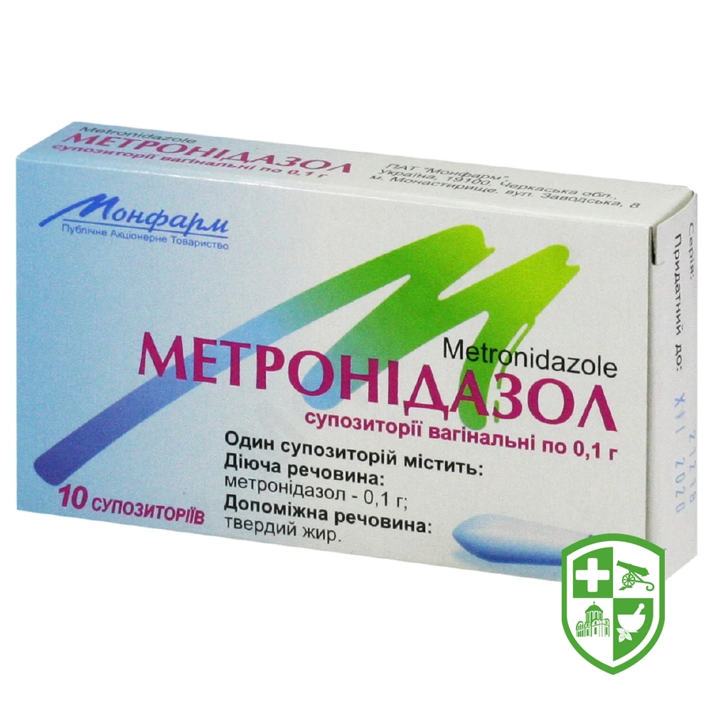 1 супозиторій містить метронідазолу 0,1 г (100 мг);