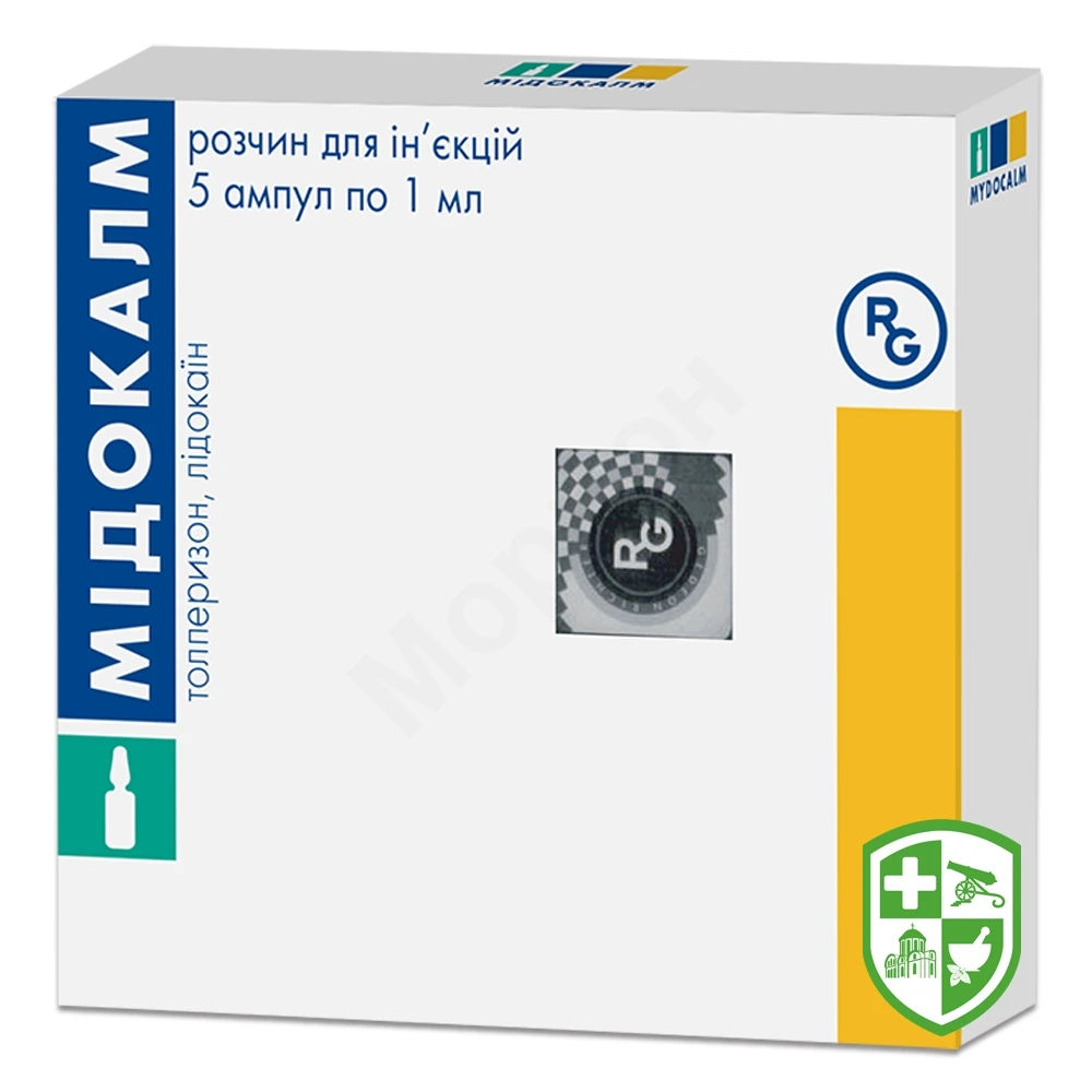 1 мл розчину містить 100 мг толперизону гідрохлориду і 2,5 мг лідокаїну гідрохлориду;