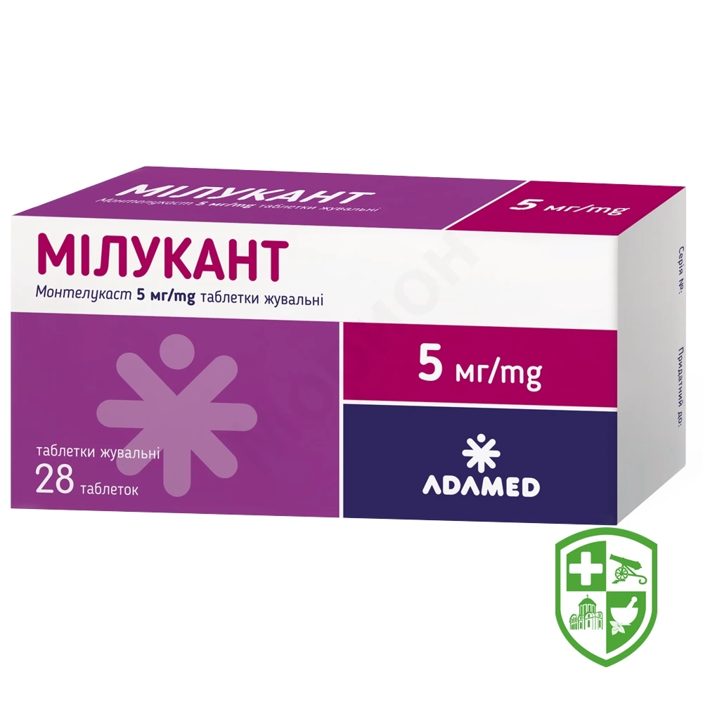Мілукант, таблетки жувальні по 5 мг, призначений для застосування дітям віком від