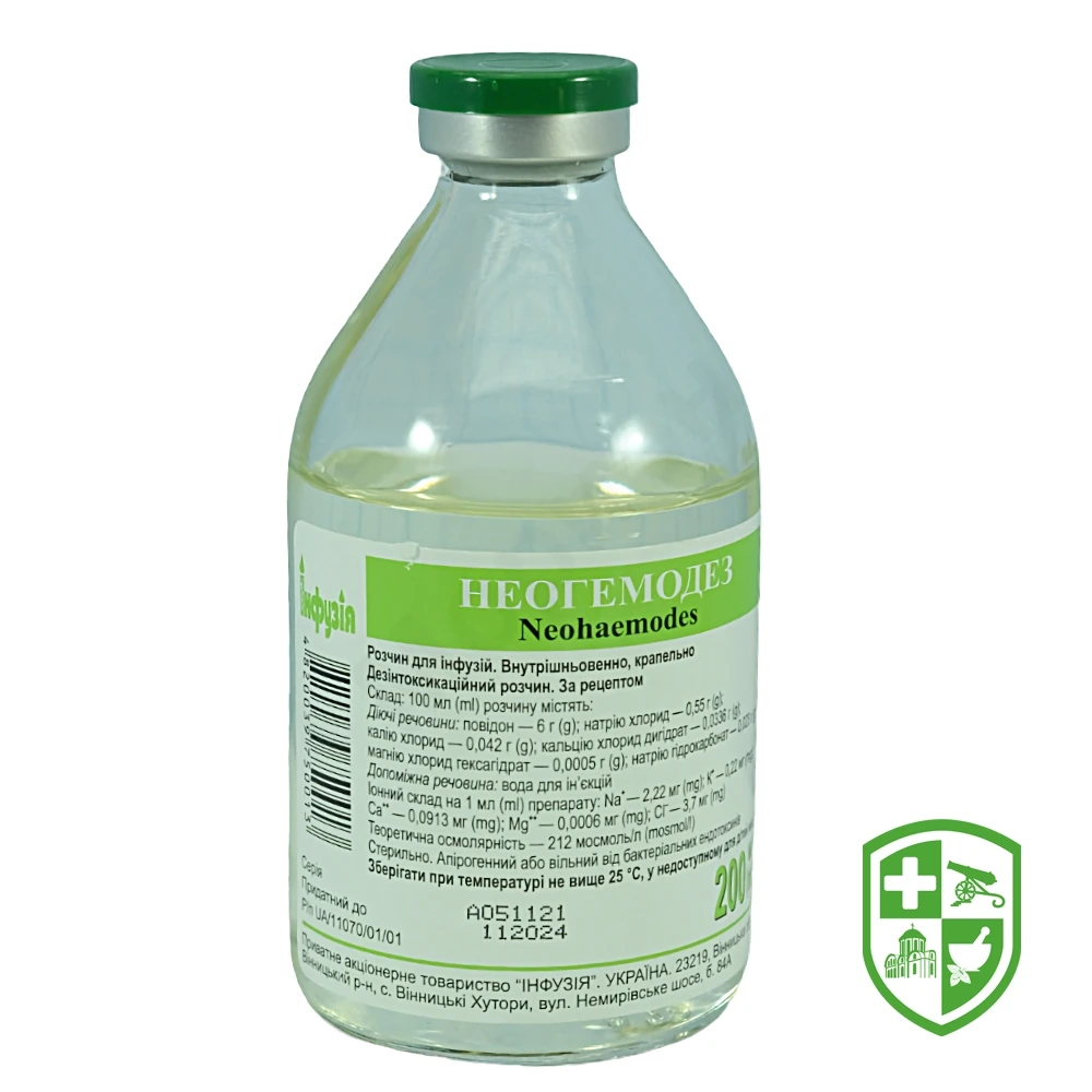 Неогемодез належить до плазмозамінних розчинів, підвищує суспензійні властивості крові, зменшує її в’язкість. Як дезінтоксикаційний засіб, зв’язує токсичні продукти, що знаходяться у кровоносному руслі, і виводить їх через нирки з організму.