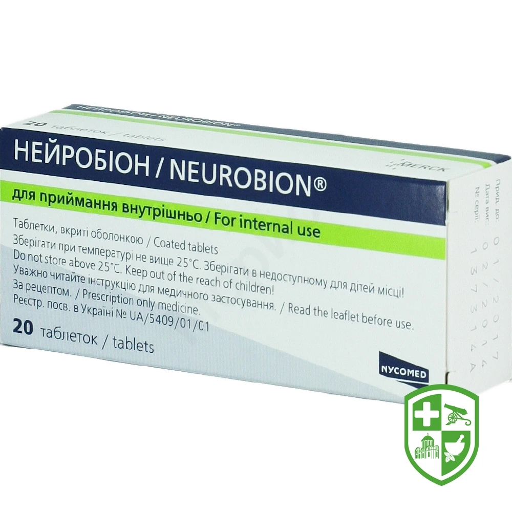 1 таблетка, вкрита оболонкою, містить: тіаміну дисульфіду (вітаміну В1) 100 мг, піридоксину гідрохлориду (вітаміну В6) 200 мг, ціанокобаламіну (вітаміну В12) 200 мкг;