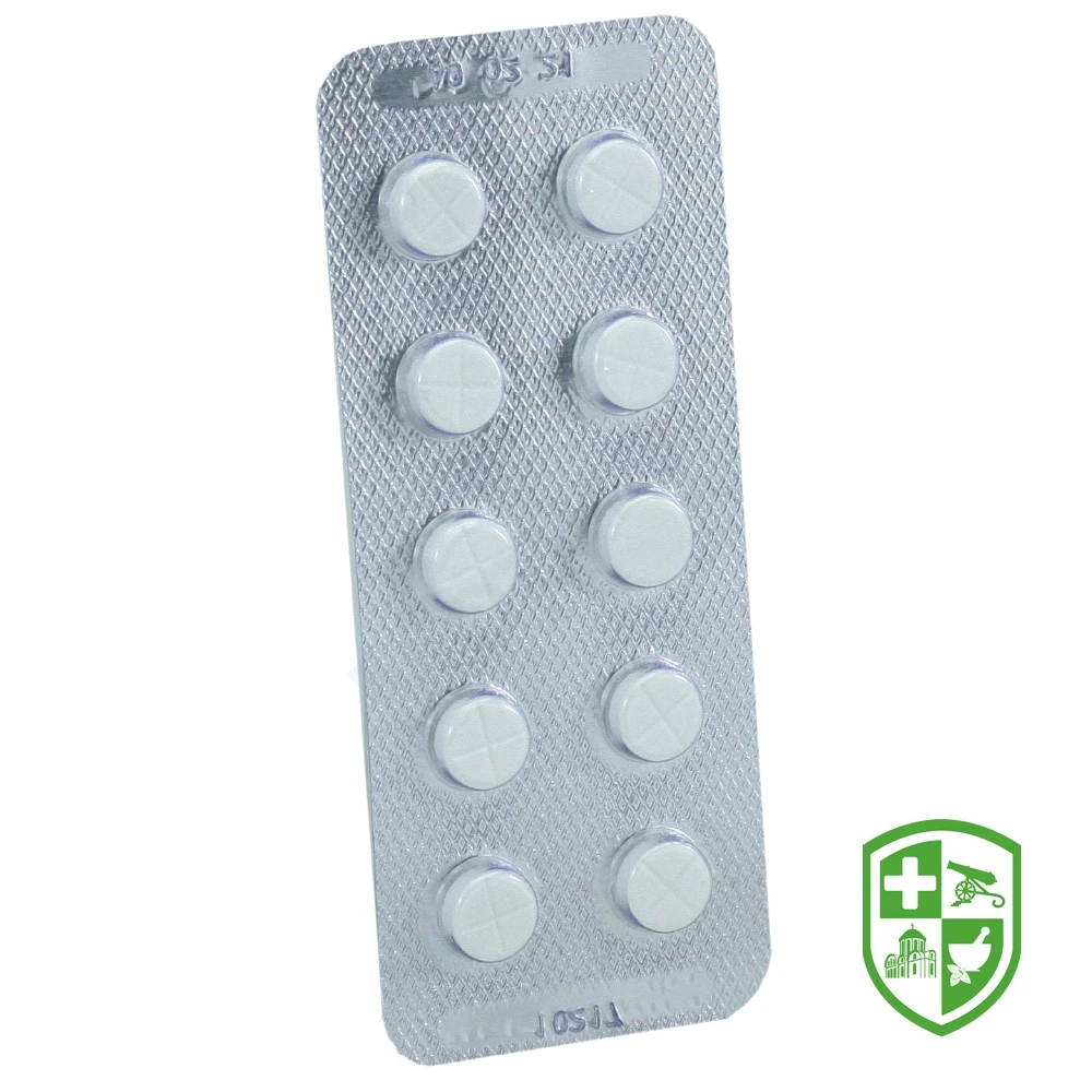 Основні фізико-хімічні властивості: таблетки білого кольору. На таблетки методом тиснення нанесені дві перпендикулярні риски, які ділять таблетку на чотири рівні частини.