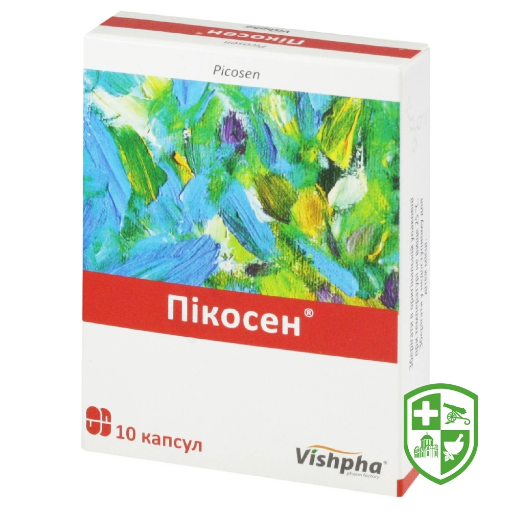 ПІКОСЕН® — комбінований контактний проносний засіб. Натрію пікосульфат є проносним засобом місцевої дії триарилметанової групи, який після бактеріального розщеплення у товстій кишці стимулює її слизову оболонку, прискорюючи перистальтику, сприяє кумуляції води та електролітів у просвіті товстої кишки. Результатом цього є стимуляція дефекації, зменшення часу транзиту і пом’якшення калу.