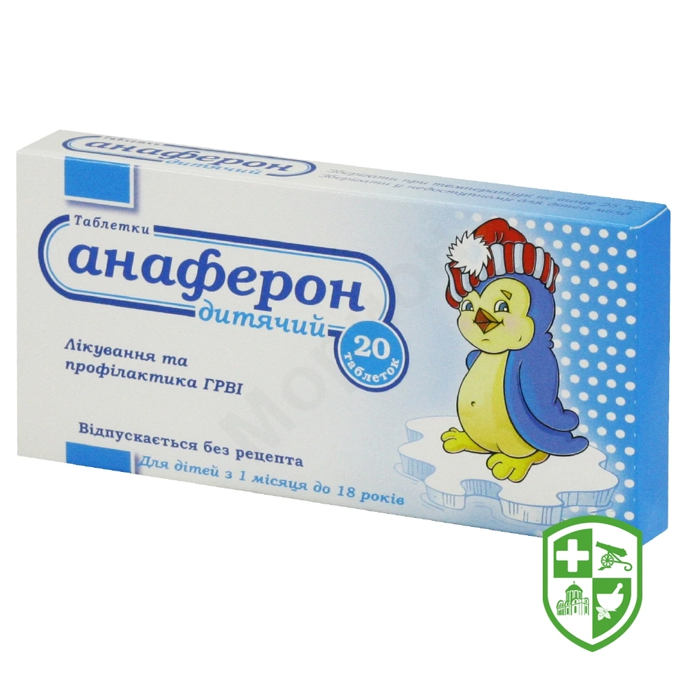 Основні фізико-хімічні властивості: таблетки плоскоциліндричної форми, з рискою та фаскою, від білого до майже білого кольору. На одному плоскому боці нанесено риску, на іншому плоскому боці нанесено напис ANAFERON KID.