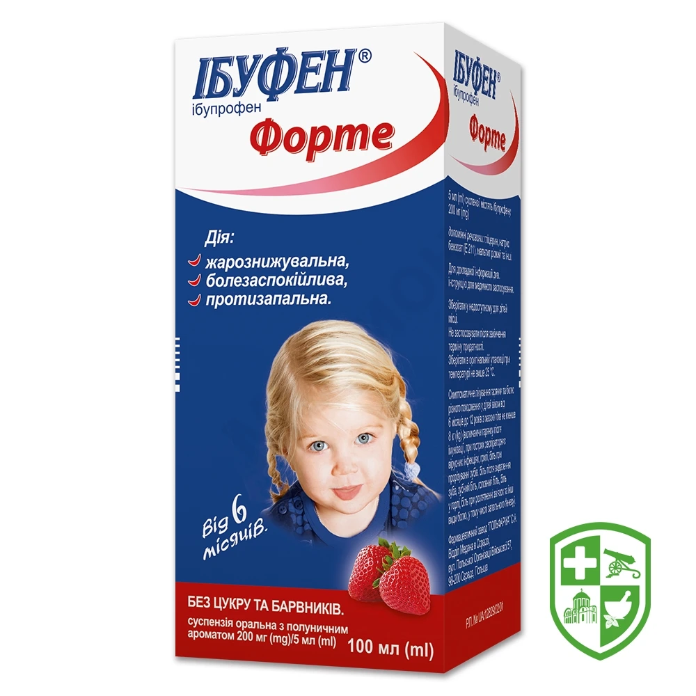 Ібуфен форте сусп. орал. 200 мг/5 мл 100.мл зі смаком полуниці №1