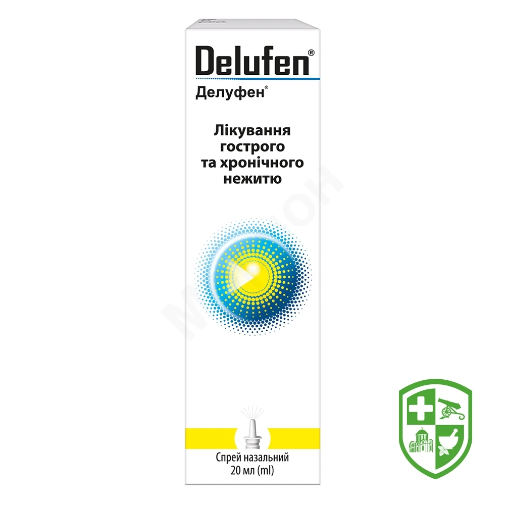 ДЕЛУФЕН®, спрей назальний, завдяки комплексній протизапальній, протиалергічній, репаративній та захисній дії на слизову оболонку носа та приносових пазух ефективно лікує нежить незалежно від причини виникнення (вірусна, бактеріальна, вазомоторна або алергічна). Швидко усуває запалення та набряк, не спричиняючи подразнення або відчуття сухості в носовій порожнині. Звільняє носові ходи та синуси від слизу. Знижує ризик розвитку гнійних ускладнень гострого катарального риносинуситу.