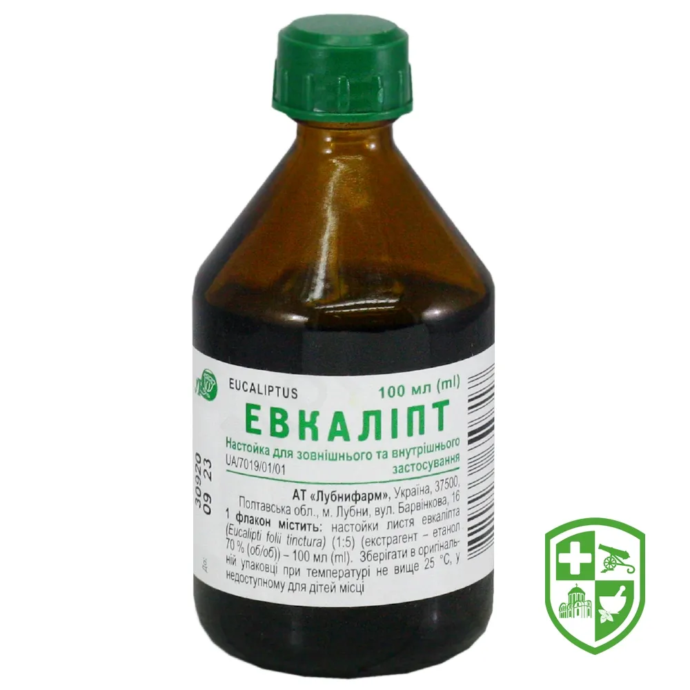 1 флакон містить: настойки листя евкаліпта (Eucalіptі folii tinctura) (1:5) (екстрагент — етанол 70% (об/об)) — 25 мл або 100 мл.
