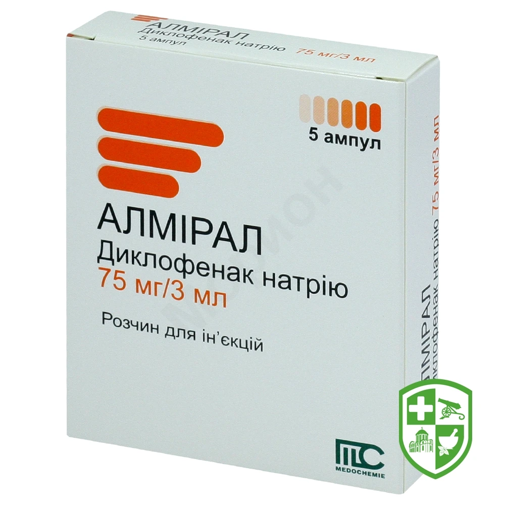 Алмірал® — нестероїдний препарат з вираженими знеболювальними/протизапальними властивостями. Він є інгібітором простагландинсинтетази (циклооксигенази). Диклофенак натрію in vitro в концентраціях, еквівалентних тим, які були досягнуті у людини, не пригнічує біосинтез протеогліканів у хрящовій тканині. Якщо препарат застосовувати одночасно з опіоїдами для зняття післяопераційного болю, Алмірал® суттєво зменшує потребу в опіоїдах.