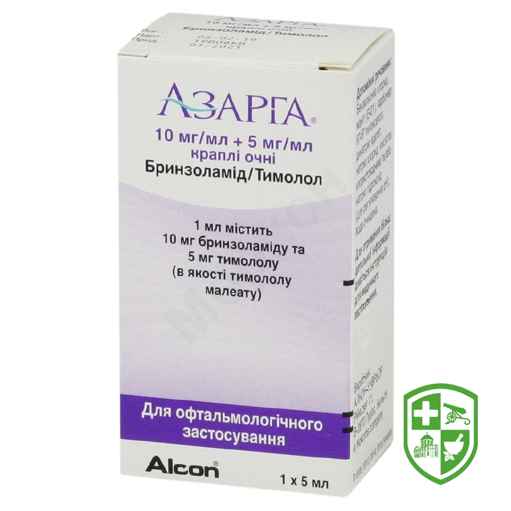 Очні краплі АЗАРГА® містять дві активні речовини: бринзоламід і тимололу малеат. Ці два компоненти знижують підвищений внутрішньоочний тиск (ВОТ) шляхом зменшення секреції внутрішньоочної рідини, але роблять це за допомогою різних механізмів дії. Комбінований ефект цих двох активних речовин призводить до додаткового зменшення ВОТ порівняно з ефектом, який досягається при застосуванні будь-якого з цих компонентів окремо.
