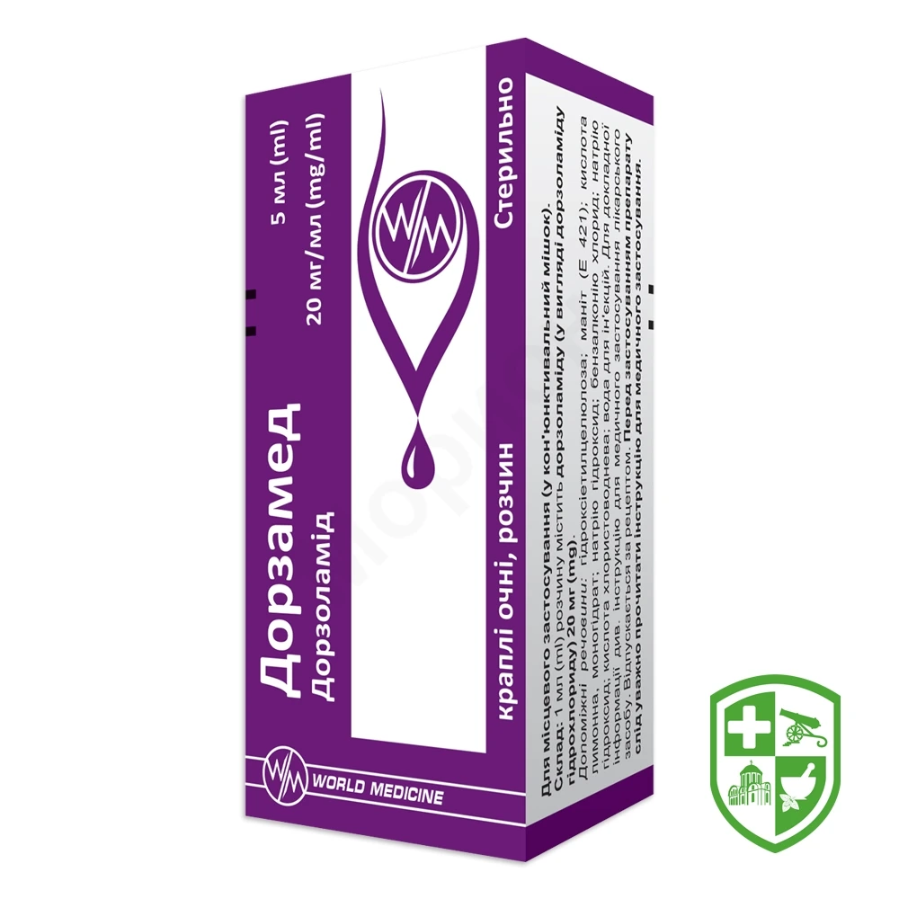 1 мл розчину містить дорзоламіду (у вигляді дорзоламіду гідрохлориду) 20 мг;