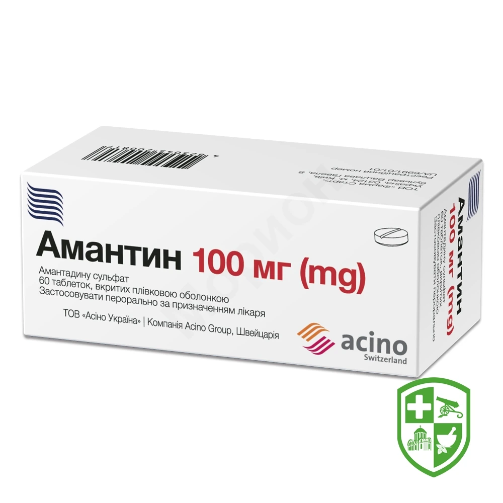 * Досягається шляхом прийому по черзі 1 раз по 1 таблетці і 1 раз по 2 таблетки по 100 мг амантадину сульфату.