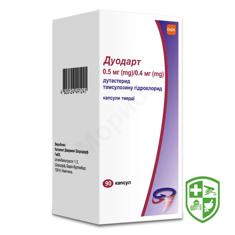 Дуодарт протипоказаний хворим з підвищеною чутливістю до дутастериду, інших інгібіторів 5a-редуктази, тамсулозину (включаючи тамсулозиніндукований ангіоневротичний набряк), інших компонентів препарату або до сої і арахісу.