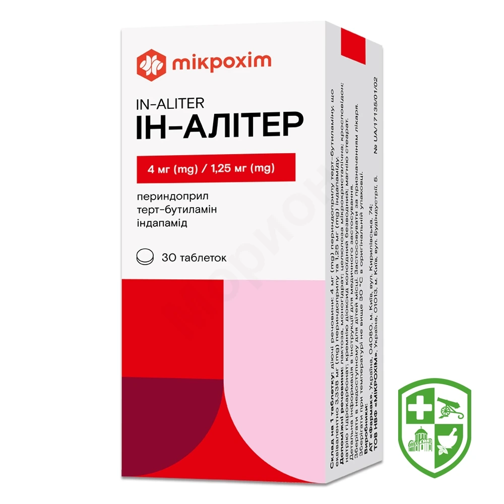 ІН-АЛІТЕР — це комбінація інгібітору АПФ периндоприлу терт-бутиламіну та сульфонамiдного діуретика індапаміду. Його фармакологічна дія зумовлена властивостями кожного компонента (периндоприлу та індапаміду) і їх адитивним синергізмом.