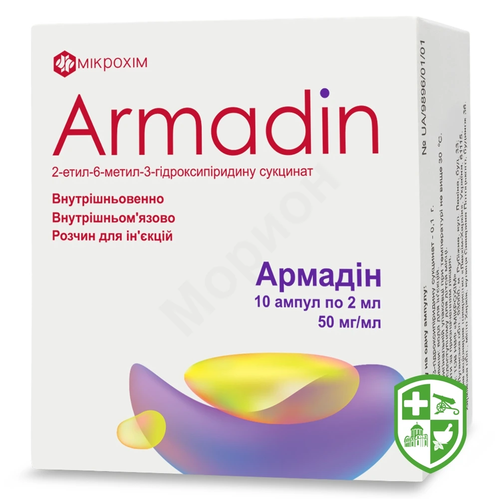 При гострих порушеннях мозкового кровообігу АРМАДІН призначати у комплексній терапії у перші 2–4 дні внутрішньовенно струминно або краплинно дорослим по 200–300 мг 1 раз на добу, потім внутрішньом’язово по 100 мг 3 рази на добу. Термін лікування становить 10–14 діб.