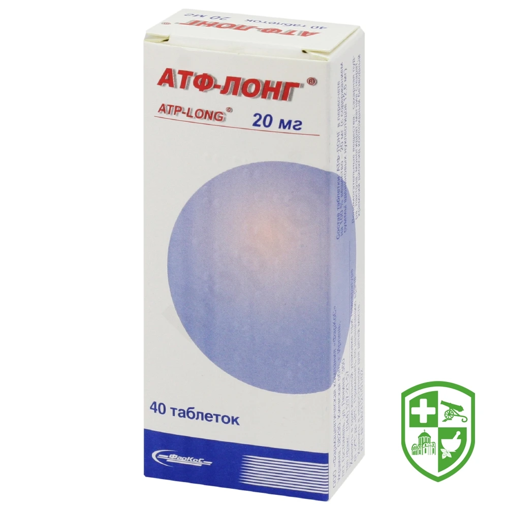 діючі речовини: 1 таблетка містить АТФ-ЛОНГ у перерахунку на 100% речовину — 20 мг (з вмістом суми аденінових нуклеотидів 12,6 мг);
