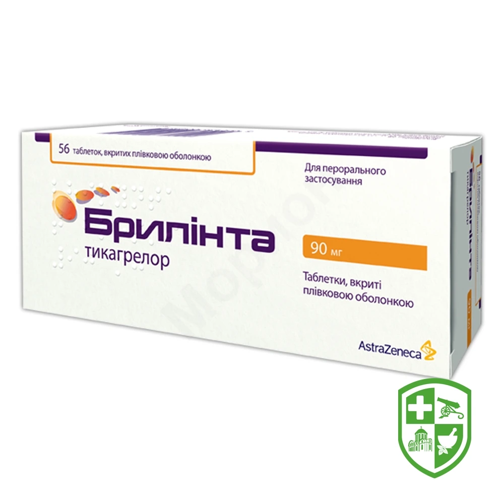 Брилінта містить тикагрелор, що належить до хімічного класу циклопентилтріазолопіримідинів (ЦПТП) та є пероральним, селективним і оборотно зв’язуючим антагоністом рецепторів P2Y12 прямої дії, запобігає АДФ-опосередкованим P2Y12-залежним активації та агрегації тромбоцитів. Тикагрелор не запобігає зв’язуванню АДФ, але будучи зв’язаним з рецептором P2Y12, перешкоджає АДФ-індукованій передачі сигналів. Оскільки тромбоцити беруть участь в ініціації та/або розвитку тромботичних ускладнень атеросклерозу, пригнічення функції тромбоцитів, як було показано, зменшує ризик серцево-судинних (СС) подій, таких як смерть, інфаркт міокарда (ІМ) або інсульт.